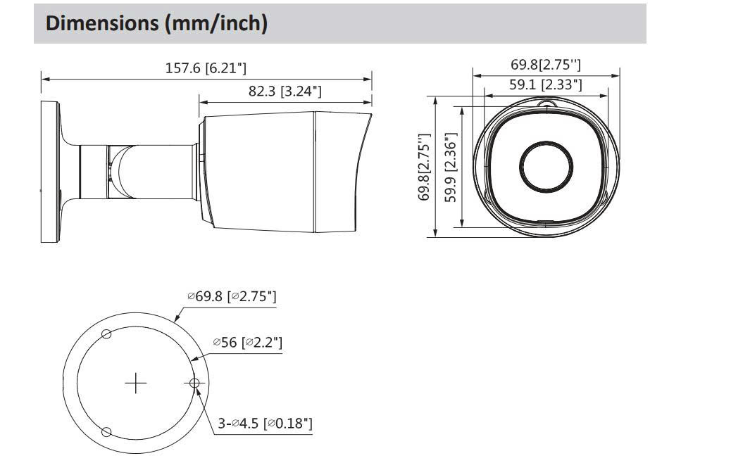 ■ Ống kính cố định 3.6mm, chuẩn kháng nước IP67