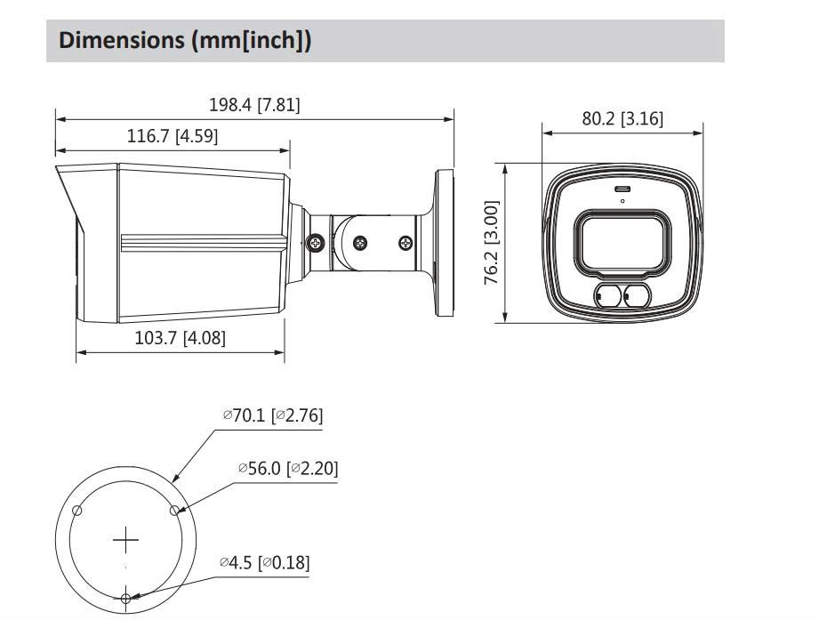 ■ Ống kính cố định 3.6mm, chuẩn chống nước IP67, điện áp DC12V, công suất 3.3W.