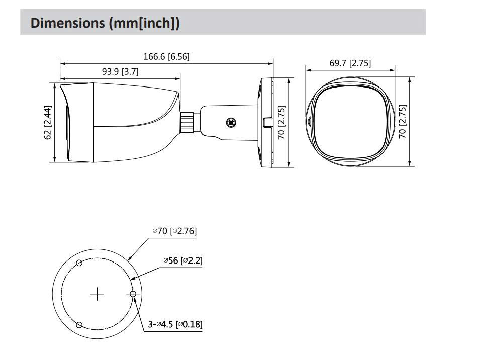 ■ Ống kính cố định 3.6mm, chuẩn chống nước IP67, điện áp DC12V, công suất 3.7W.