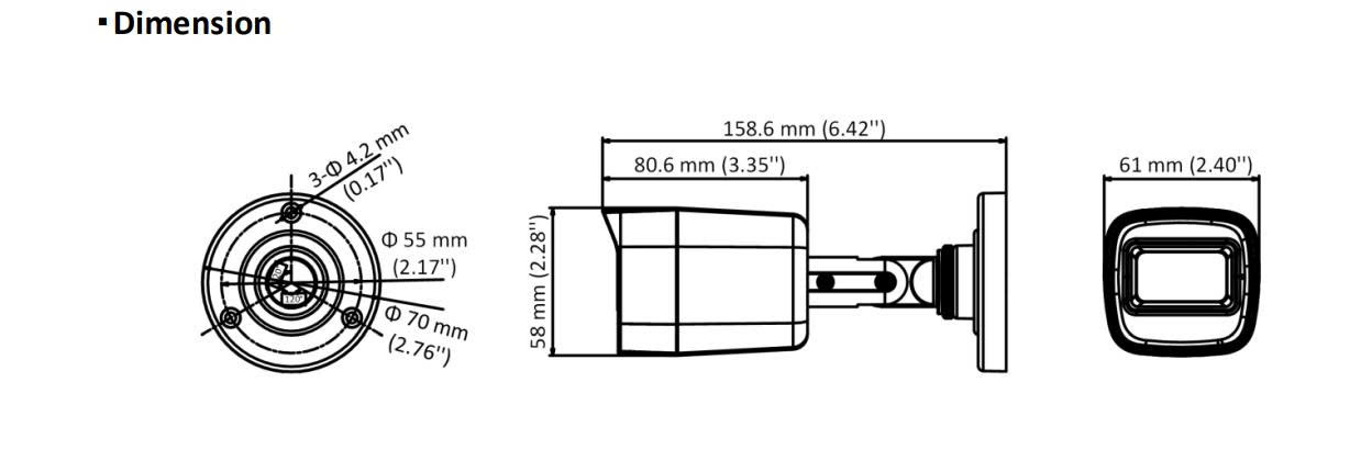 • Cảm biến CMOS 5Mp. Độ phân giải 2560 x 1944. Ống kính 2.8mm, 3.6mm, 6mm