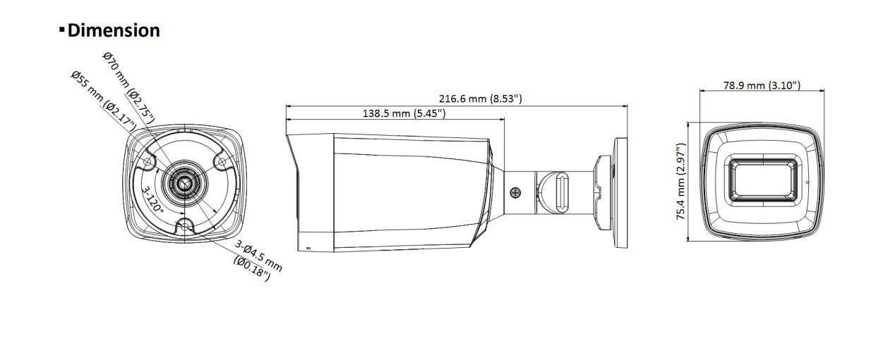 • Hỗ trợ 2D DNR, DWDR, HLC, menu OSD