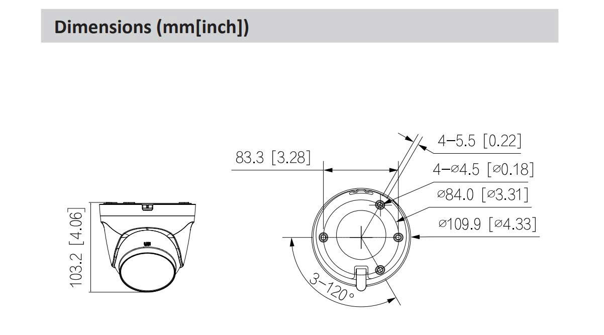 ■ Ống kính cố định 3.6mm cho góc nhìn 79°, chuẩn tương thích Onvif 2.4, chuẩn chống nước IP67.