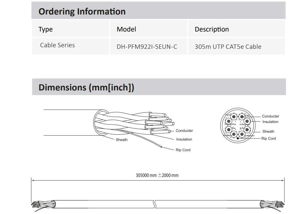 Cáp mạng UTP CAT.5E lõi hợp kim 305m DAHUA DH-PFM922I-5EUN-C