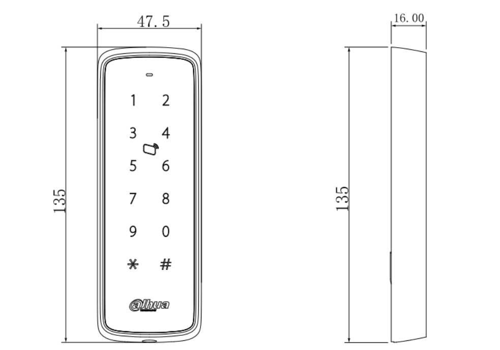 Đầu đọc thẻ từ, mật khẩu Dahua DHI-ASR1201D ■ Giao tiếp RS485 hoặc Wiegand ■ Hỗ trợ thẻ Mifare 13.56MHz ■ Đèn báo XANH hoặc ĐỎ. ■ Chống thấm nước.