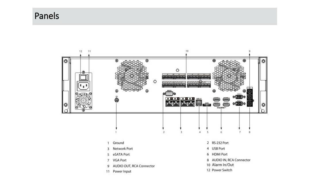 ■ Hỗ trợ 16 ổ cứng mỗi ổ 20TB, 1 cổng esata, usb hỗ trợ 4 cổng , 2 cổng RJ45(10/100/1000M), 1 cổng RS232, 4 cổng HDMI, 2 cổng VGA