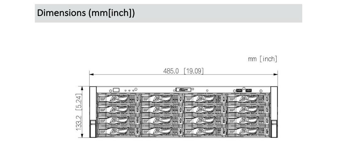 ■ Điện áp 100–240 VAC, 50±2% Hz, công suất không ổ cứng 25W, môi trường làm việc -10 ~ 55 độ C, kích thước 485.0 mm × 508.3 mm × 133.2 mm, trọng lượng không ổ cứng 11.95KG, chất liệu kim loại."