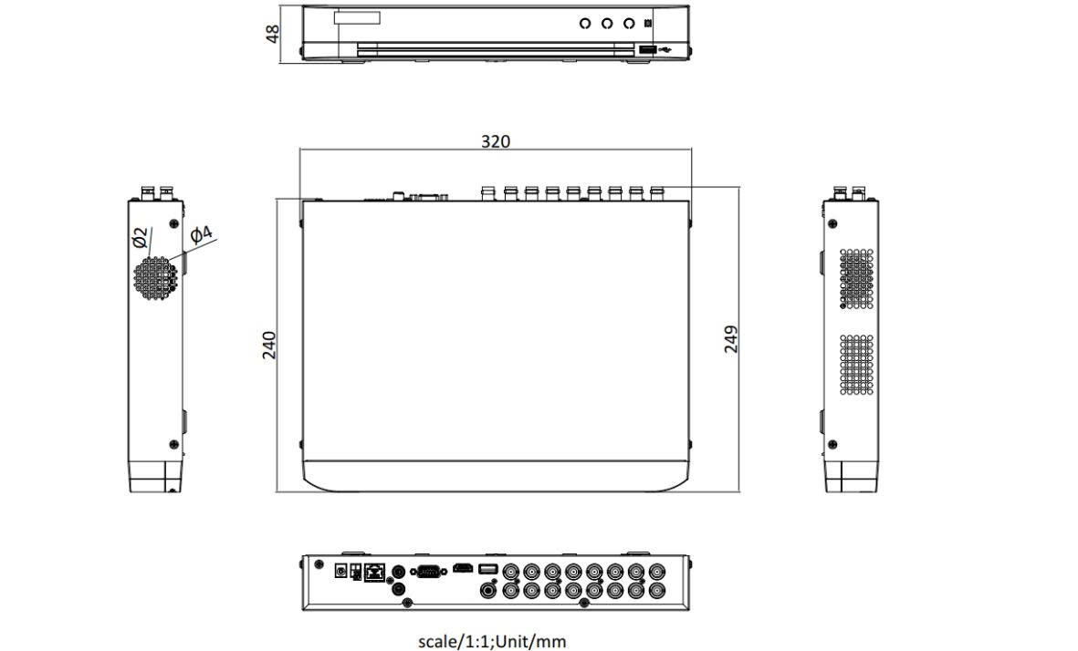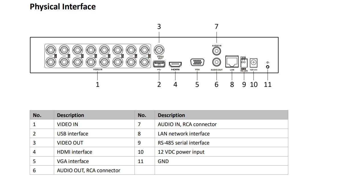 • 02 x USB 2.0 (7216HQHI 1 cổng USB3.0); 01 x RS485