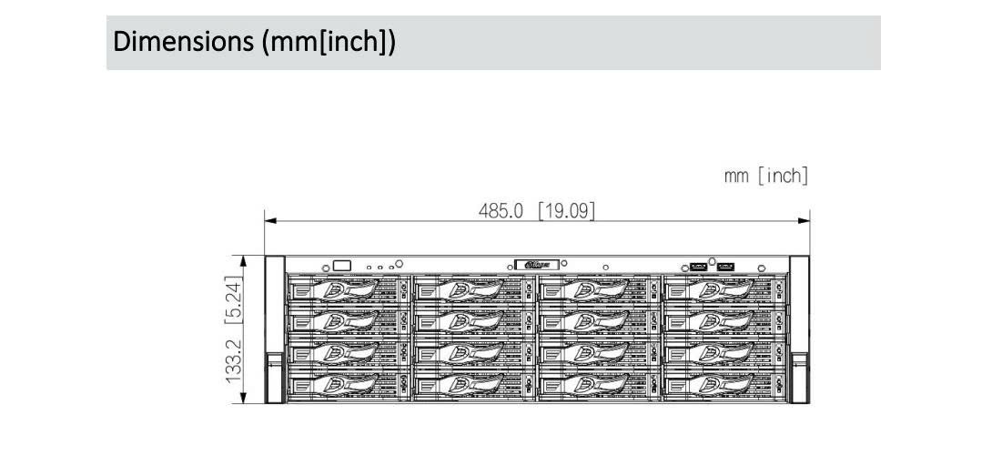 ■ Điện áp 100–240 VAC, 50±2% Hz, công suất không ổ cứng 25W, môi trường làm việc -10 ~ 55 độ C, kích thước 485.0 mm × 508.3 mm × 133.2 mm, trọng lượng không ổ cứng 11.95KG, chất liệu kim loại."