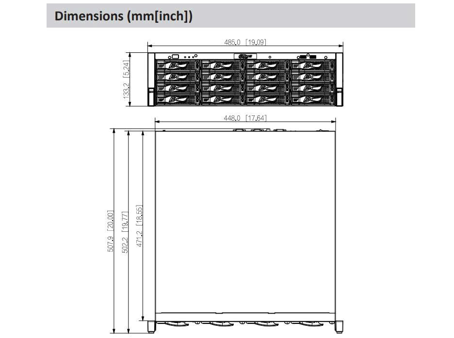 ■ Điện áp 100–240 VAC, 50-60 Hz, công suất không ổ cứng 15W, môi trường làm việc -10 ~ 55 độ C, kích thước 485.0 mm × 508.5 mm x 133.2mm, trọng lượng không ổ cứng 11.95KG, chất liệu kim loại."