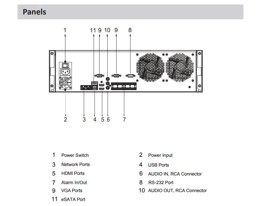 ■ Hỗ trợ 16 ổ cứng mỗi ổ 20TB, 1 cổng esata, usb hỗ trợ 4 cổng , 2 cổng RJ45(10/100/1000M), 1 cổng RS232, 2 cổng HDMI, 2 cổng VGA