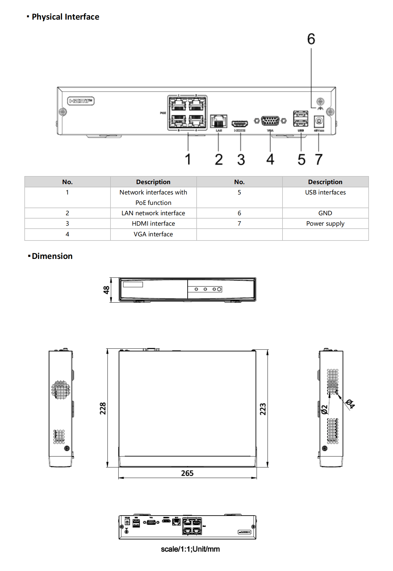 ■ Đầu ghi DS-7104NI-Q1/4P/M: 4 (4P) cổng PoE chuẩn 802.3af/at, tổng công suất nguồn PoE đến 36W (4P) và sử dụng nguồn cấp 48VDC.