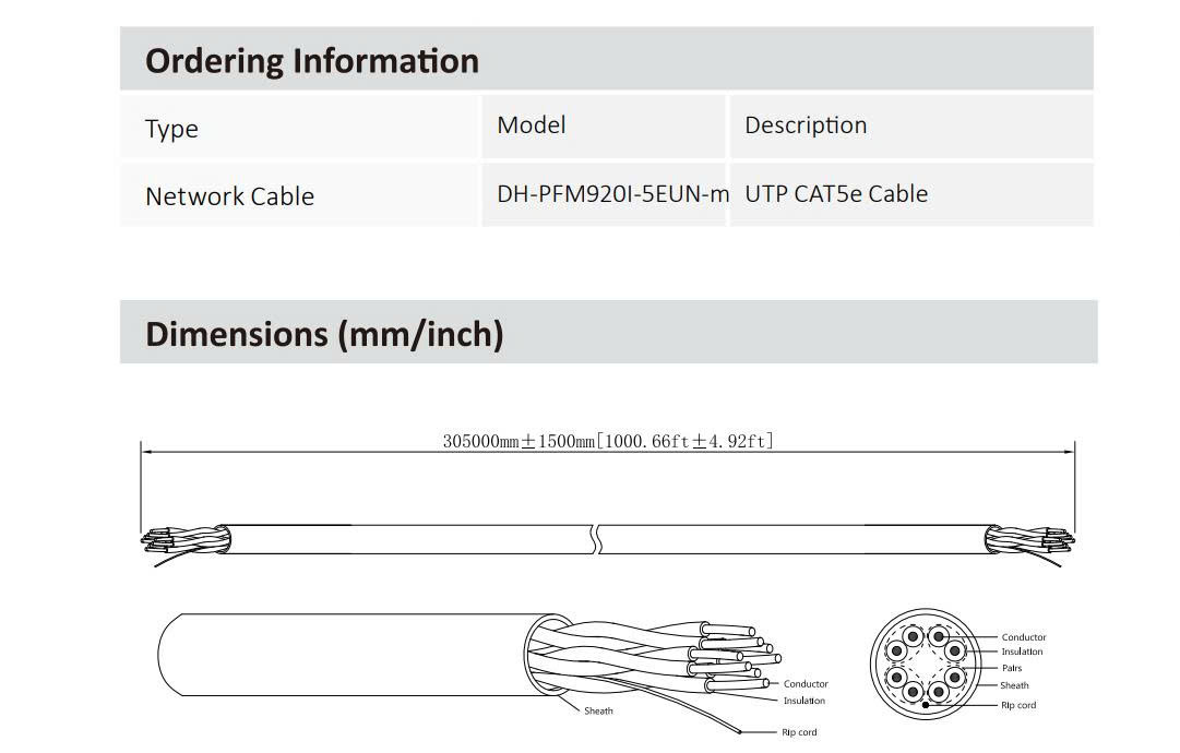Dây cáp mạng UTP CAT.5E 305m DAHUA DH-PFM920I-5EUN-m (Vỏ màu Xám)