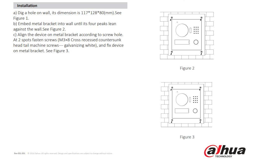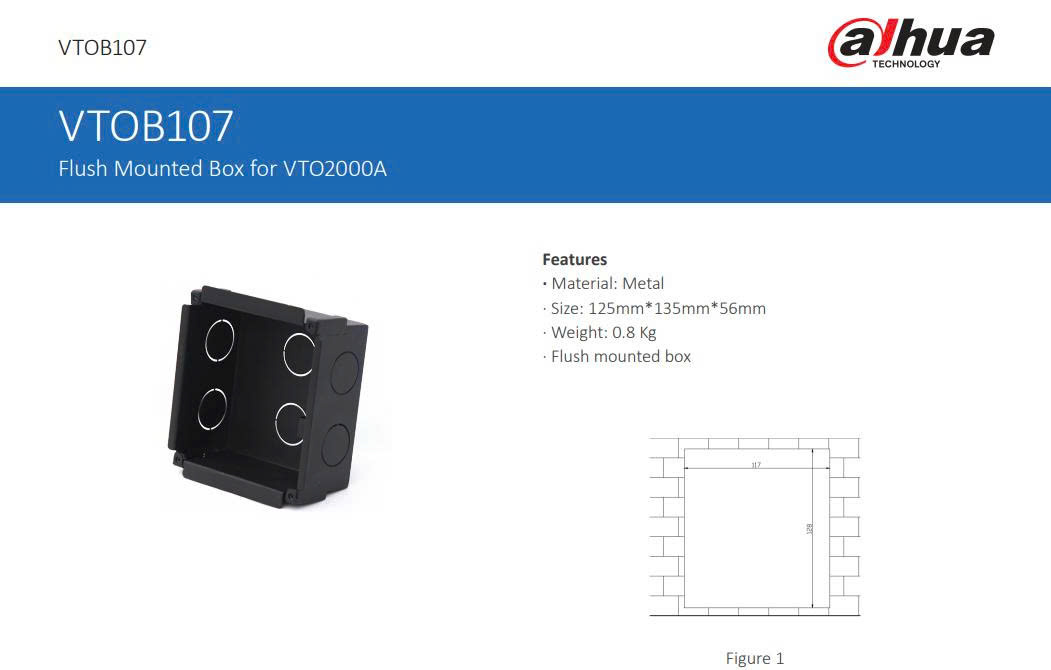 Flush Mounted Box for VTO2000A ■ Chất liệu : Kim loại ■ Kích thước: 125mm*135mm*56mm ■ Cân nặng 0.8 Kg ■ Đế âm tường