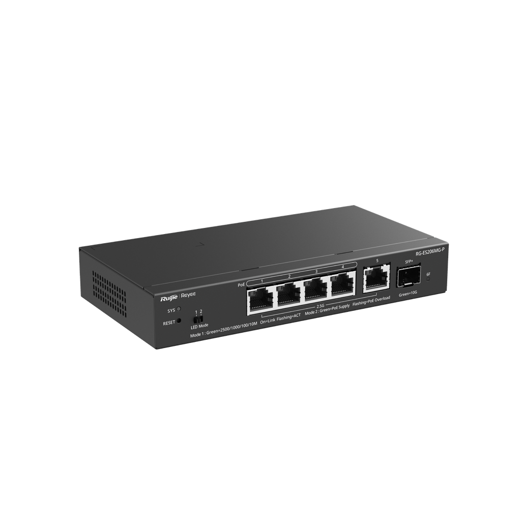 Layer 2 Smart Managed PoE Switch 5 cổng 2.5G, 1 cổng 10G RG-ES206MG-P