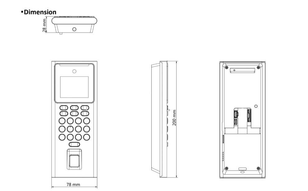 • Kết nối: USB, khoá điện, nút nhấn Exit, cửa, RS - 485