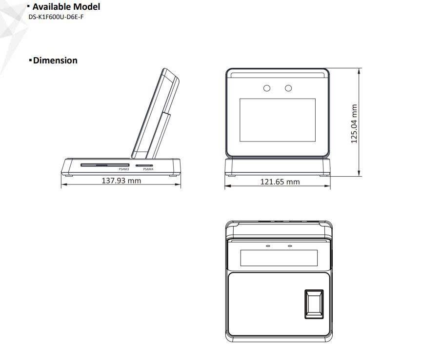Máy Đăng ký Hikvision DS-K1F600U-D6E-F khuôn mặt + vân tay + thẻ EM, Mỉfare