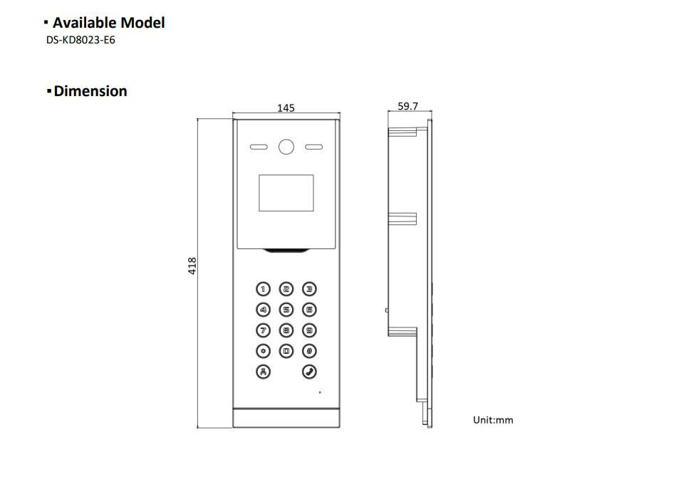 Nút ấn Sảnh chuông hình Hikvision DS-KD8023-E6 có màn hình 3.5 inch