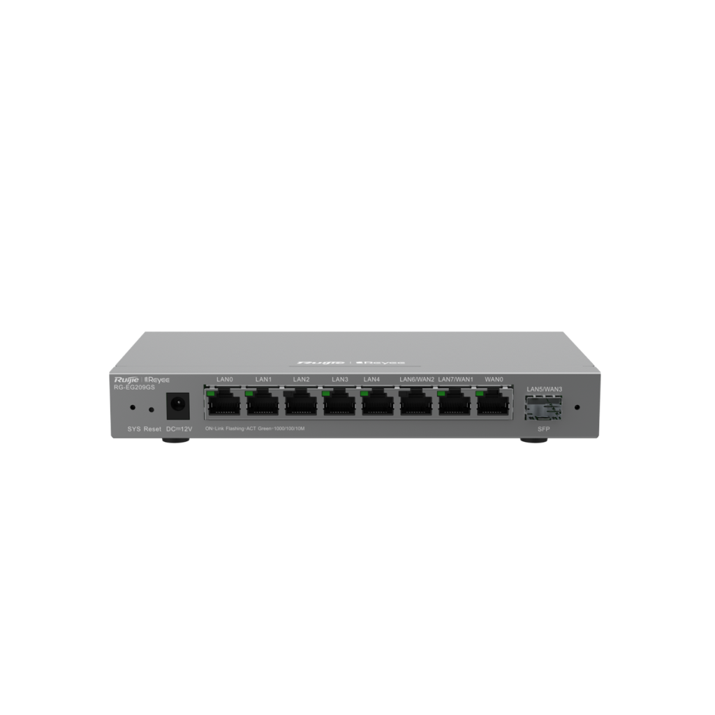 - 8 cổng 10/100/1000M BASE-T (mặc định 1 cổng WAN cố định), 1 cổng LAN quang 1000 BASE-X